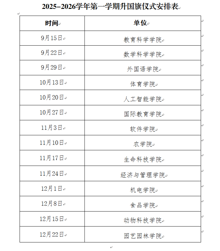 附件:2025-2026学年第一学期升国旗仪式安排表