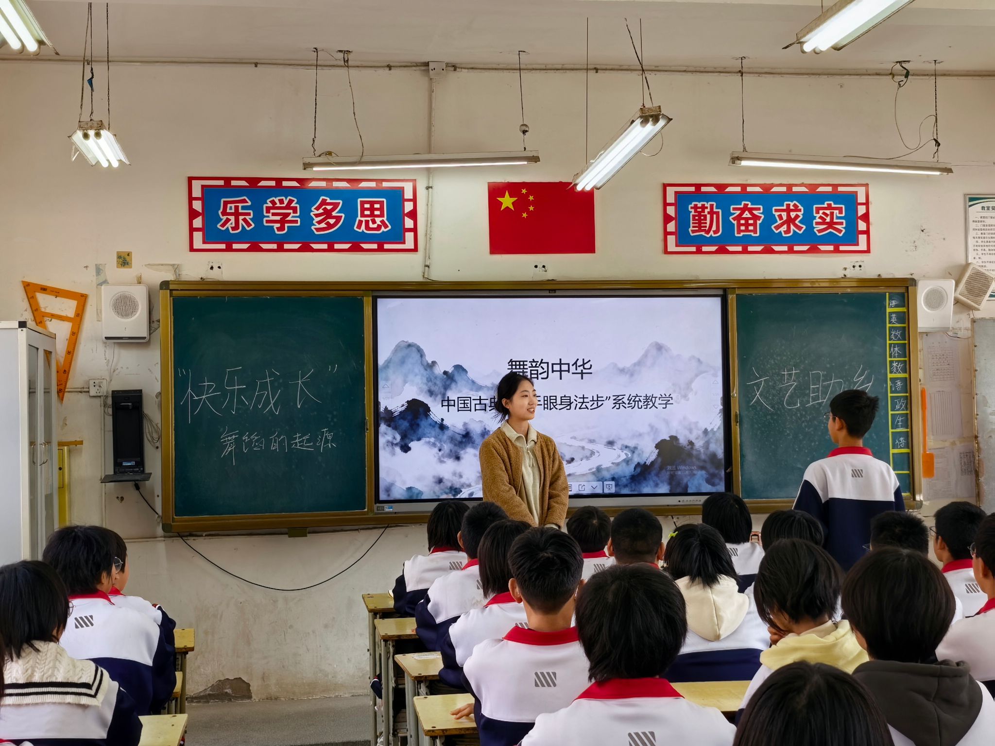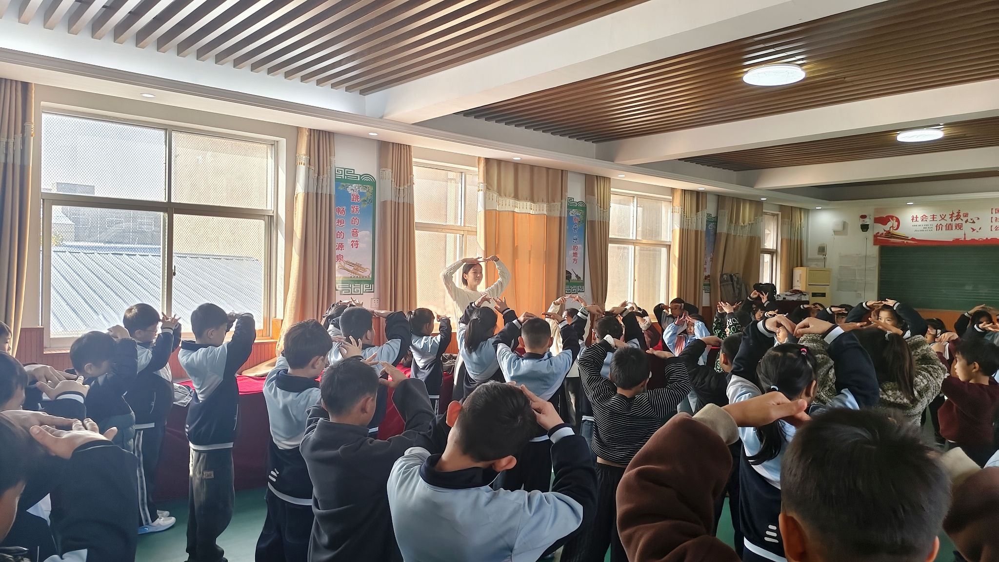 音乐课上,志愿者创新教学模式,融入趣味游戏,通过游戏互动让孩子们感知韵律之美,音乐魅力在歌声中悄然传递。舞蹈课上,志愿者编排简单易学的舞蹈动作,孩子们踮起脚尖、舒展肢体,用灵动的舞姿展现出少年阳光朝气的精神风貌。